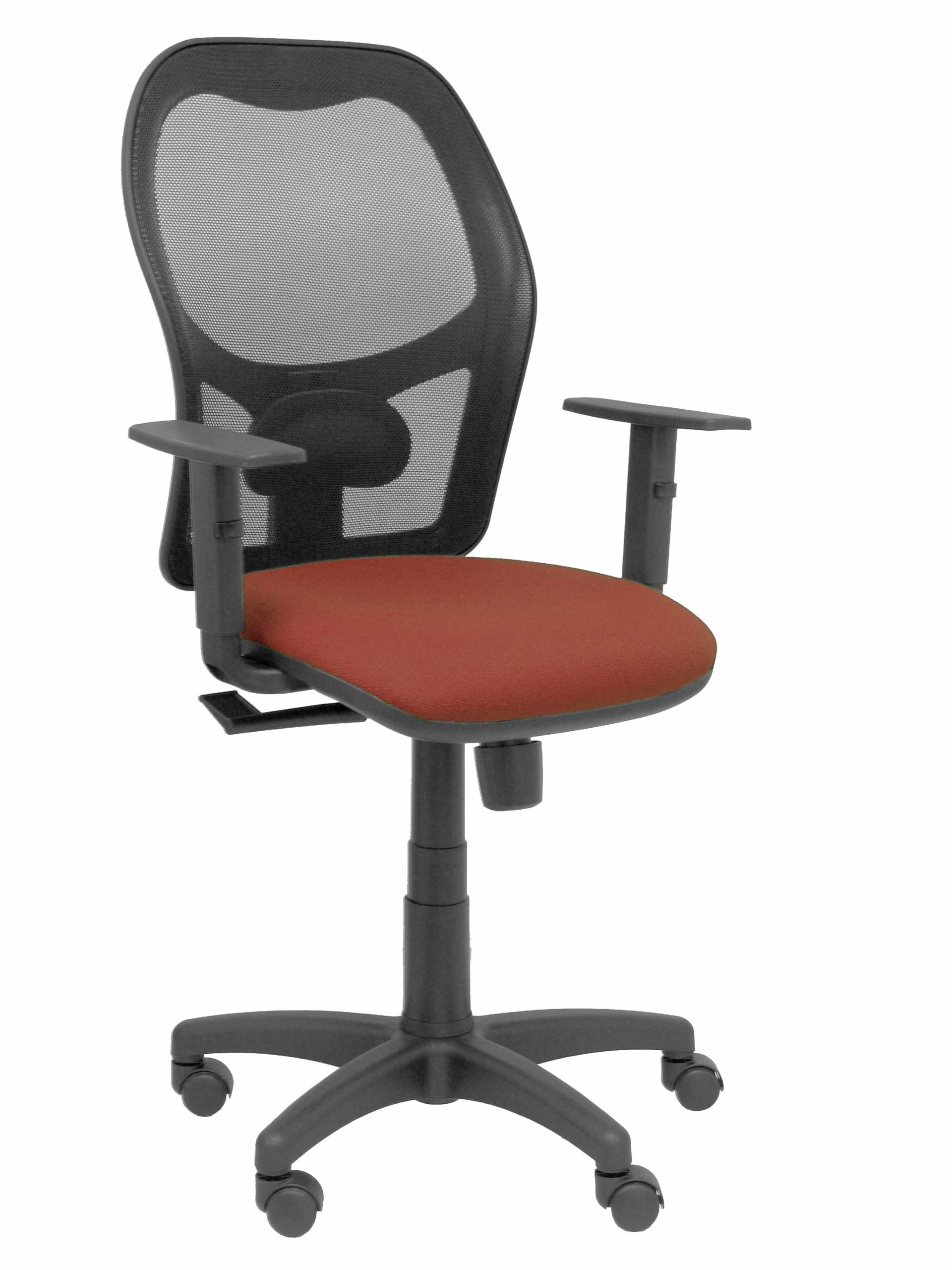 Silla AlocEn malla negra asiento bali marrOn brazos regulables